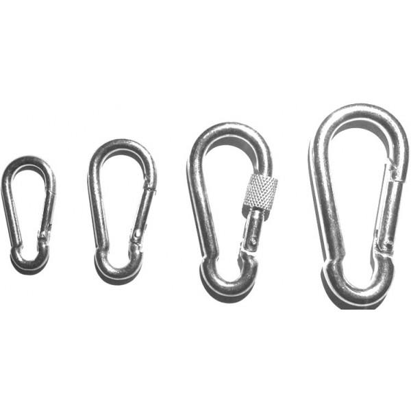 CARABINA TIP ALPINISM UTILIZATA PENTRU ASIGURAREA DIVERSELOR OBIECTE, INCEPAND DE LA CHEI, CABLURI, CHINGI, SFORI, FRANGHII, ETC.. INCHIDEREA CARLIGULUI SE FACE PRINTR-UN LEVIER CU ARC, CARABINIERA NEPUTAND RAMANE DESCHISA
