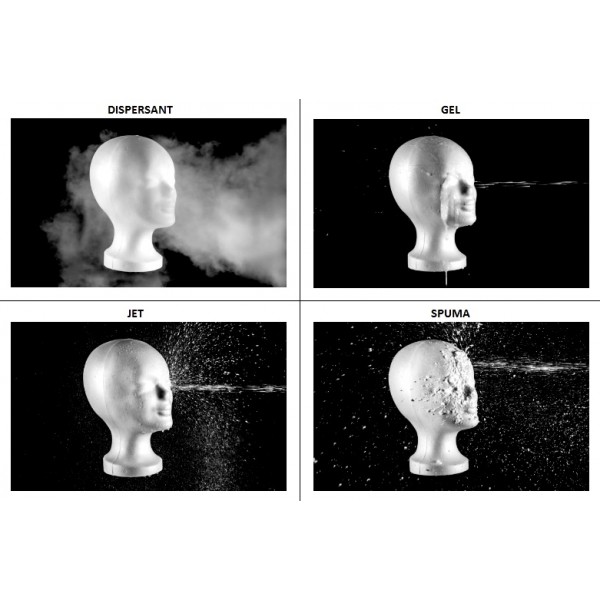 Spray DISPERSANT: pulverizeaza gazul in mod imprastiat, creand o "perdea" de gaz in zona ochita
